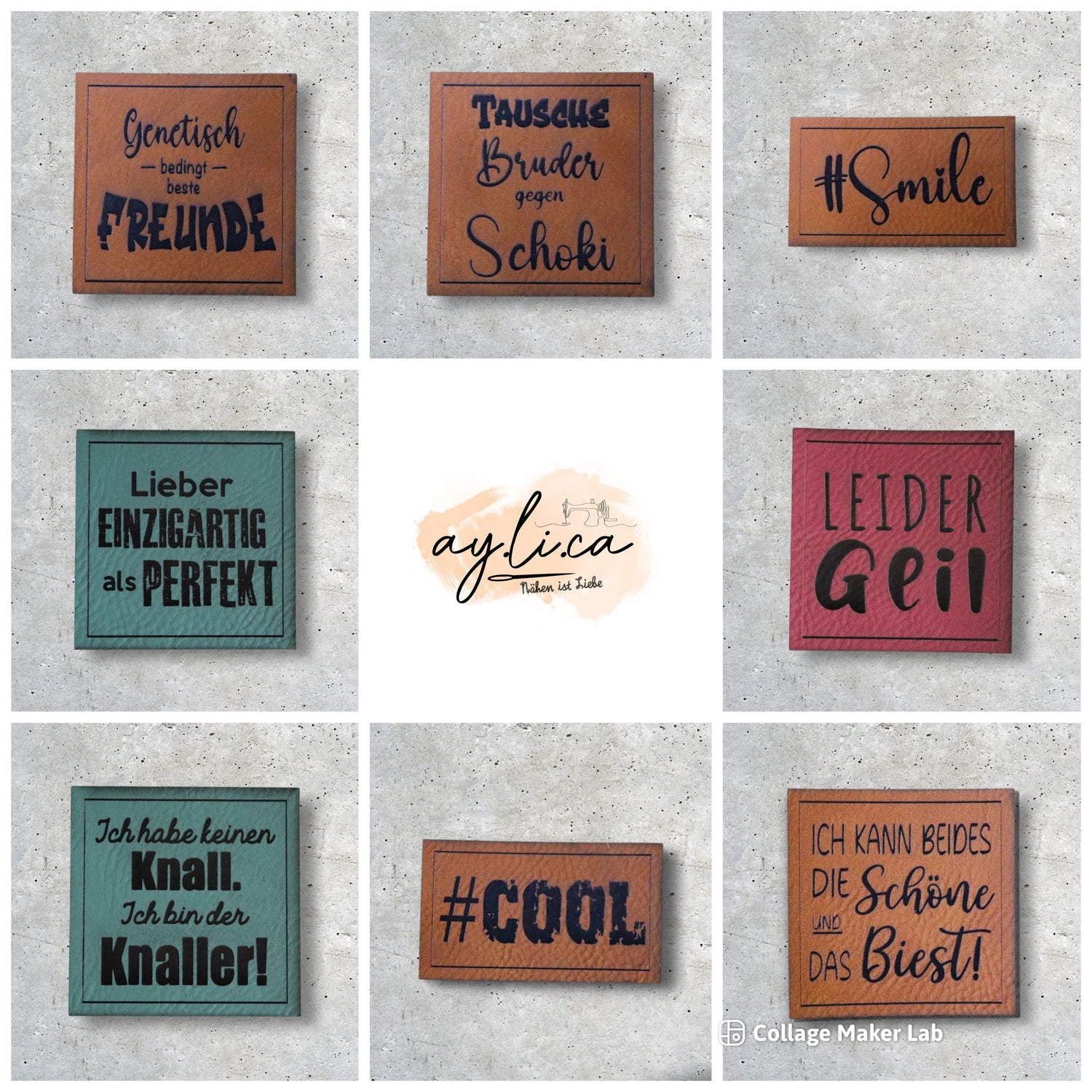 Schöne Kunstlederlabel und Ösenpatches zum Aufnähen und verschönern eurer Unikate.