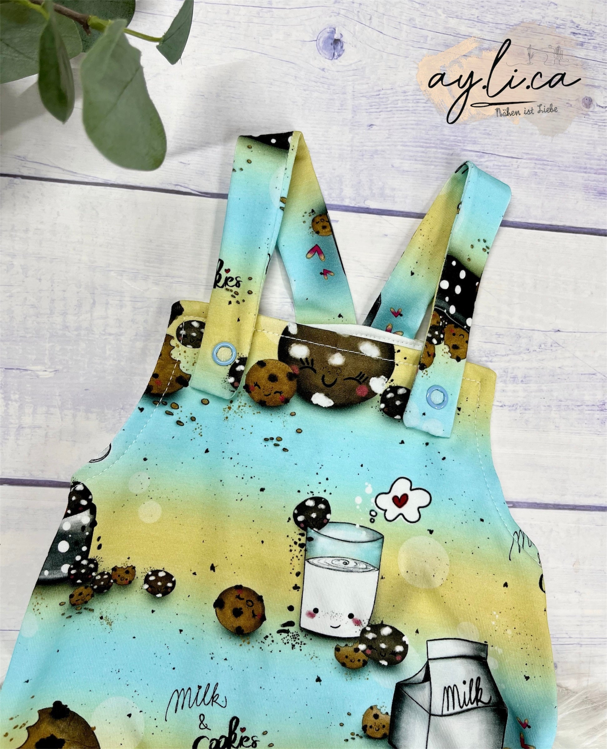 Süße Baby-Latzhose mit niedlichem Keksdesign in Gr.56/62