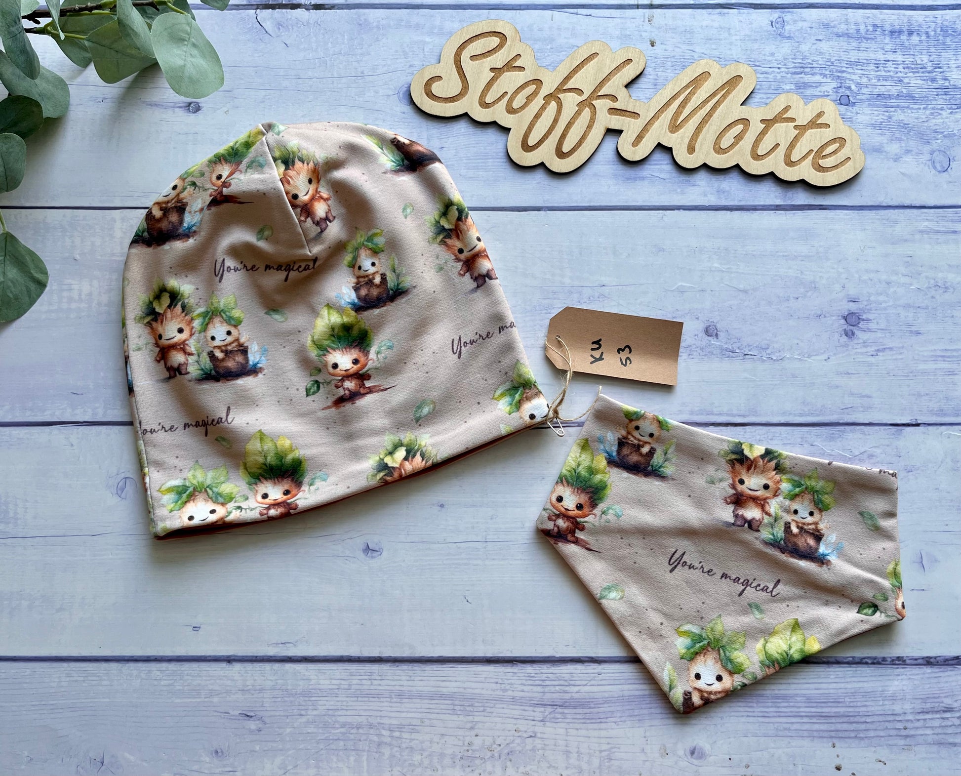 Tolles Set bestehend aus einer Wendebeanie KU 53cm und passendes Halstuch Einheitsgröße mit Druckknopfveschluss.