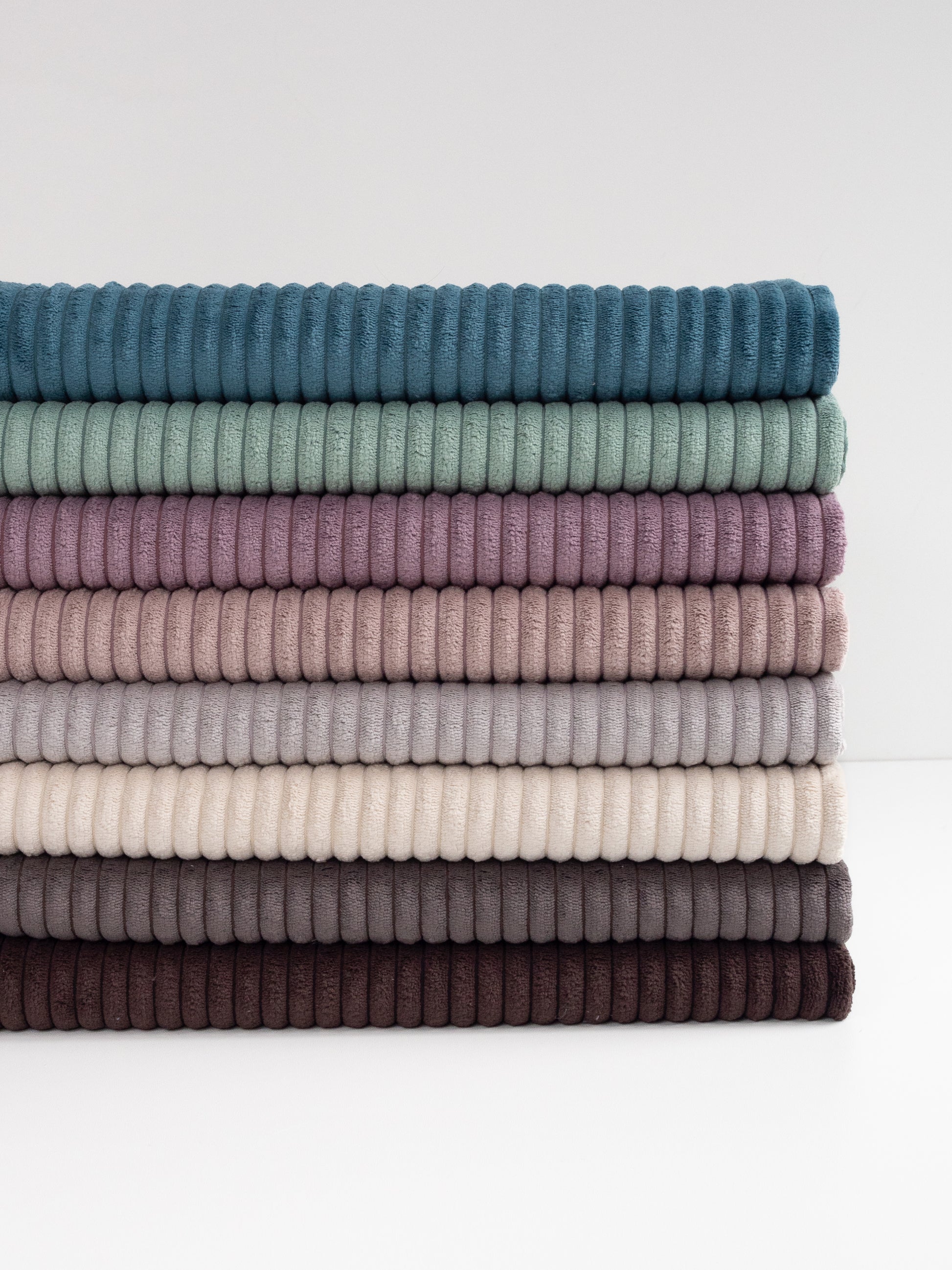 Die glatte Oberfläche mit feinen Rillen verleiht den charakteristischen Cordlook, während die samtige Textur für ein luxuriöses Gefühl sorgt, sei es als elegantes Kleidungsstück, Accessoires oder Heimdekoration.
