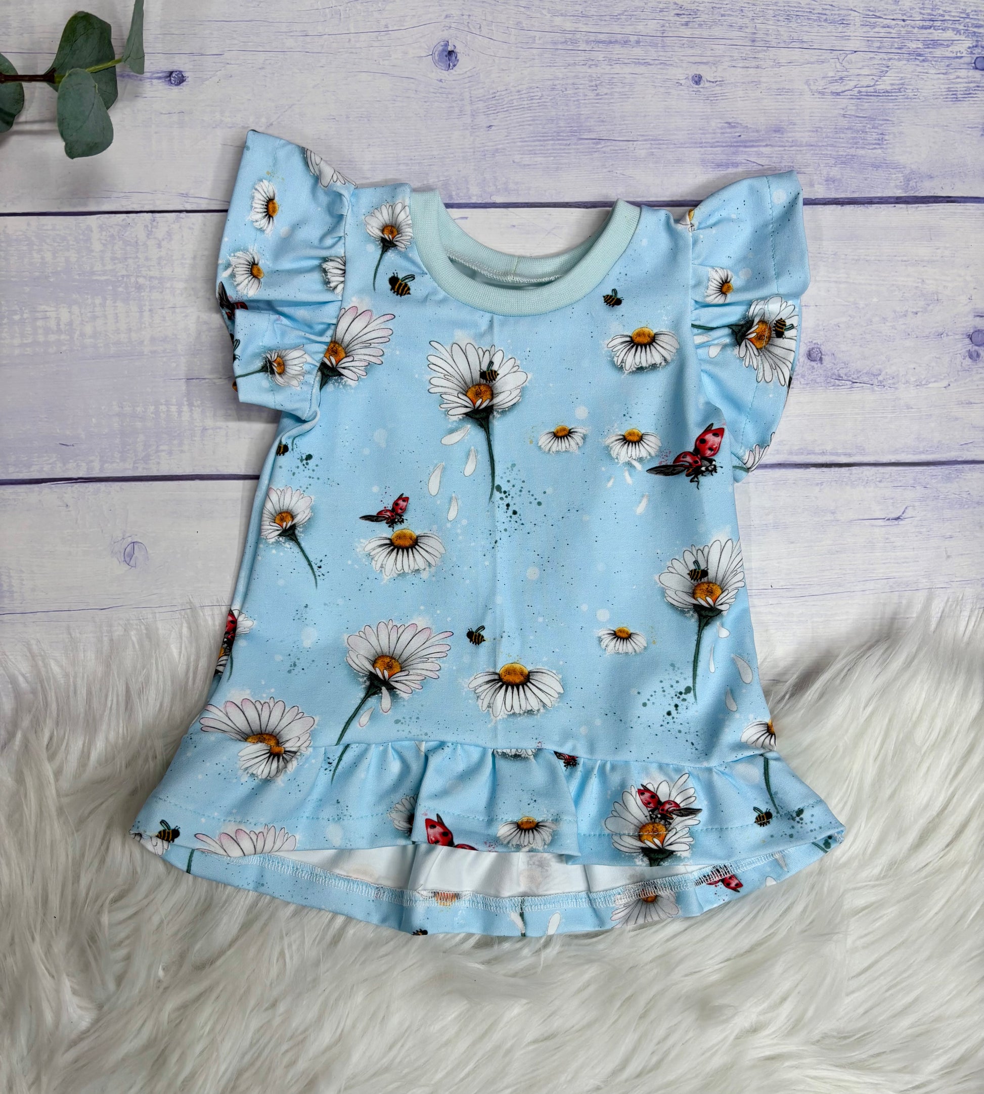 süßes Girly Shirt in Gr.80 mit niedlichen Rüschen am Bund und an den Armen.