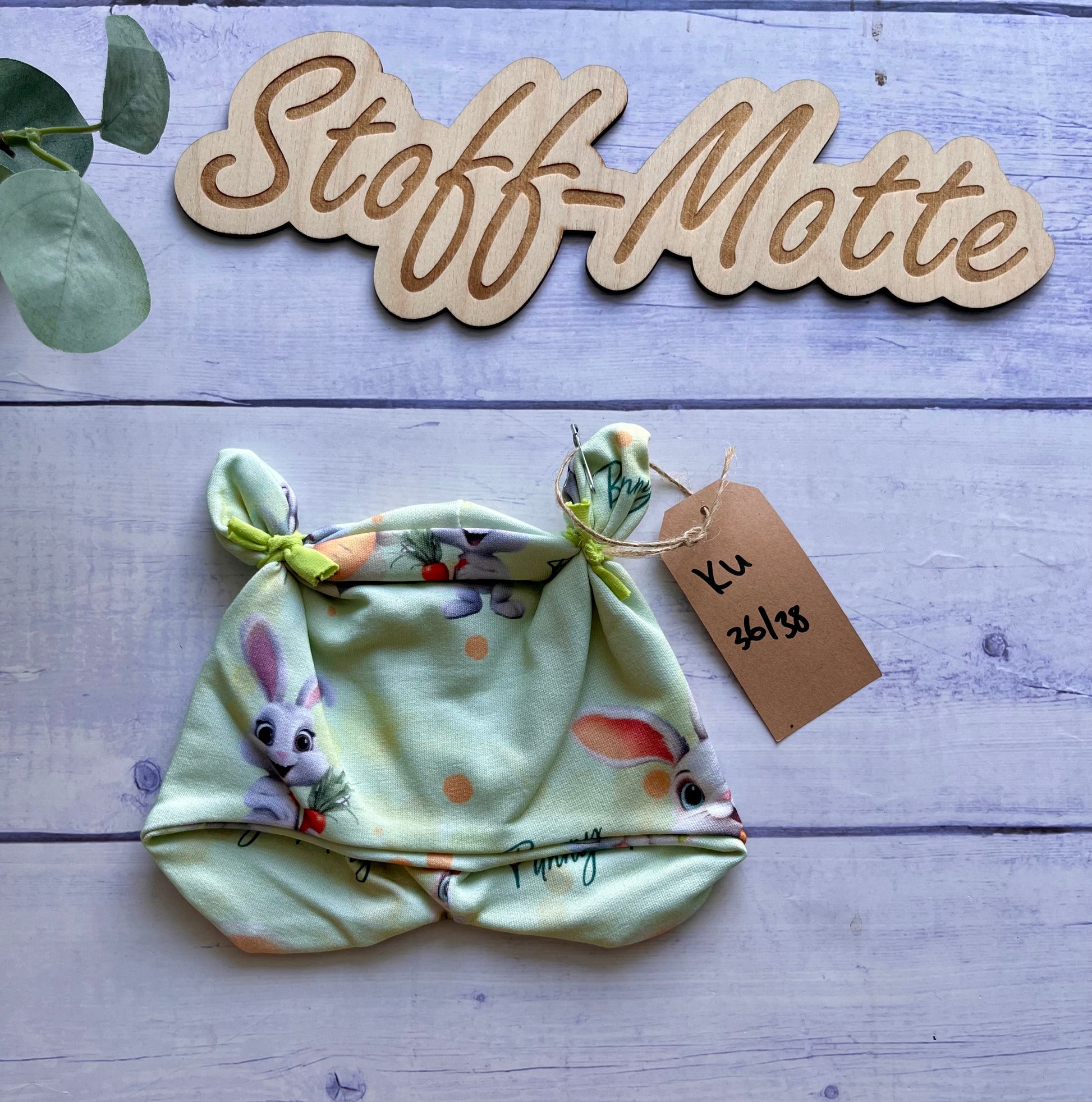Niedliche Zipfelmütze „Häschen“, tragbar mit einem Kopfumfang von 36/38cm.