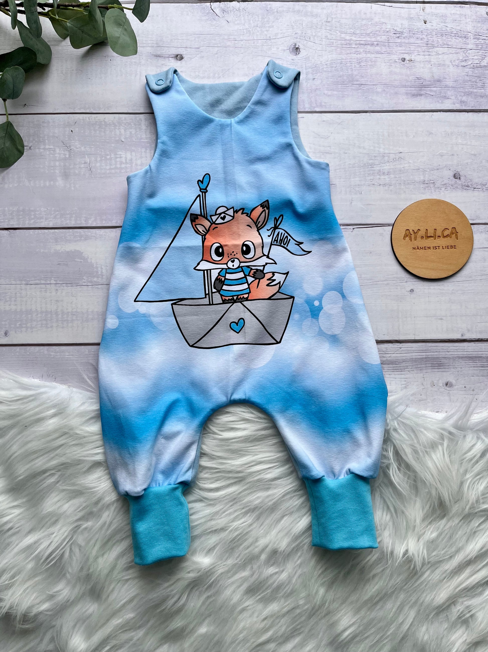 Hübscher Babystrampler mit süßem großen Fuchsmotiv vorne in Gr.68