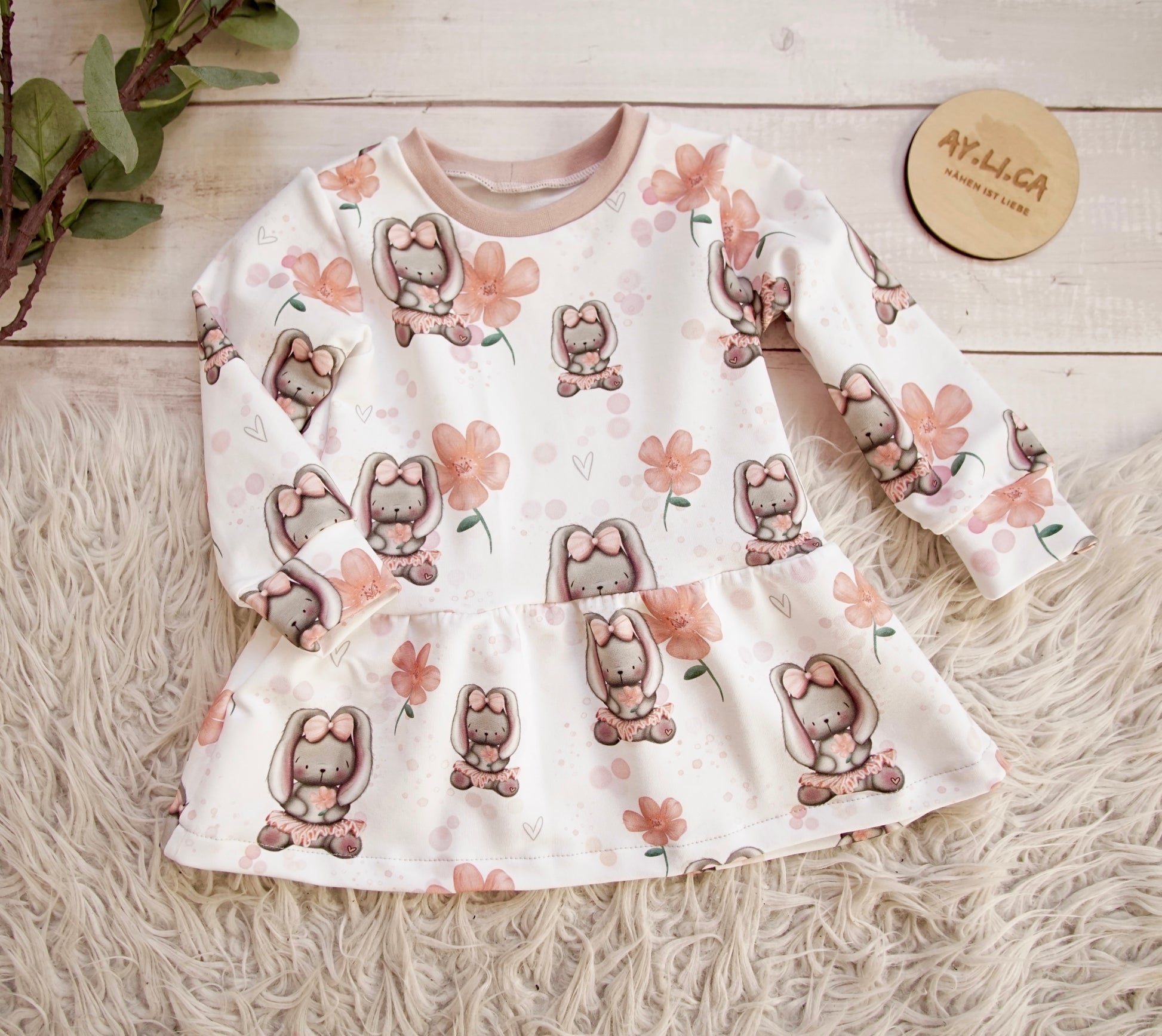 Hübscher Sweater mit Volant und niedlichem Häschendesign in Gr.80